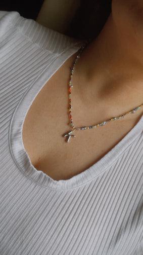 💧 Keep it dry — Avoid showers, pools + perfumes while wearing your necklace. Moisture can weaken stringing materials and fade delicate seed beads.